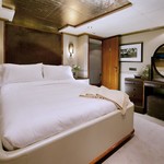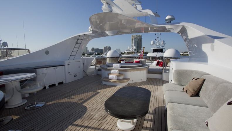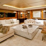 The motor yacht can accommodate 12 guests in 6 cabins with an interior design by Zuretti, Candy & Candy and an exterior design by Stefano Natucci.