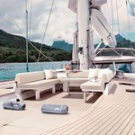 The sailing yacht can accommodate 6 guests in 3 cabins with an interior design by Adam Lay Studio and an exterior design by Dubois.