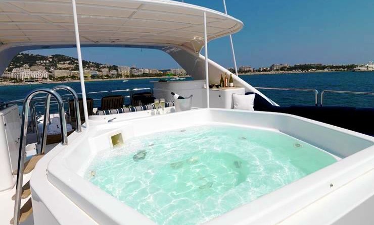 The motor yacht can accommodate 10 guests in 5 cabins.