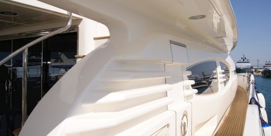The motor yacht can accommodate 12 guests in 5 cabins.