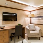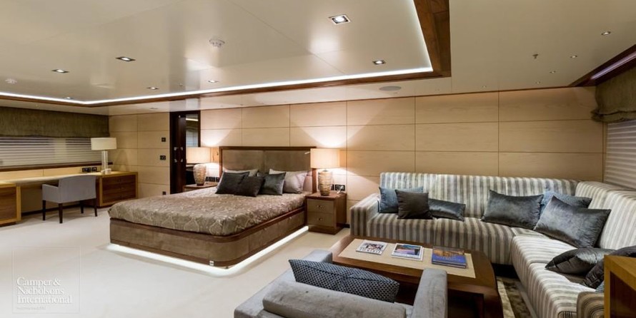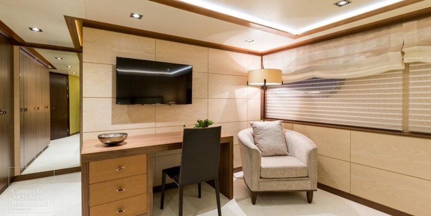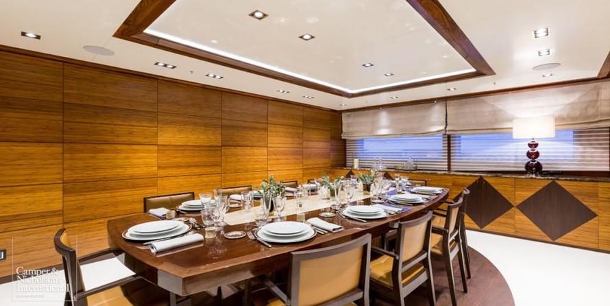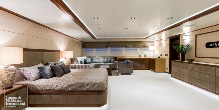 She is powered by CAT engines of 3516 hp each and a cruising speed of 14 knots. Maybe's maximum range is estimated at 5000 nautical miles.