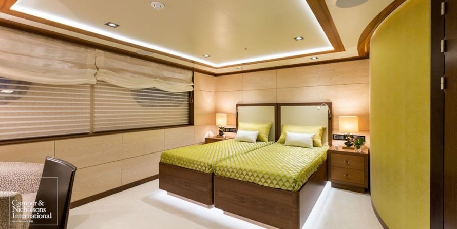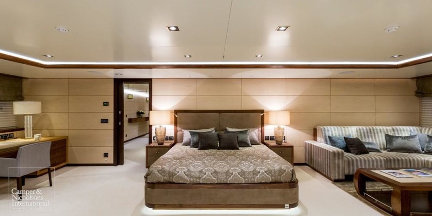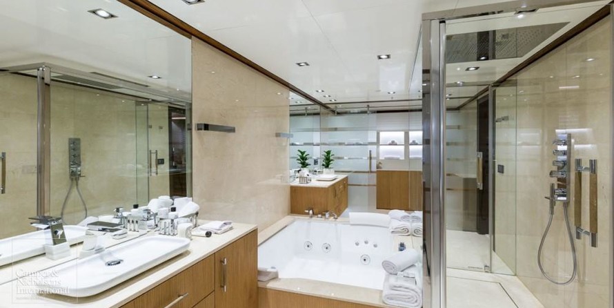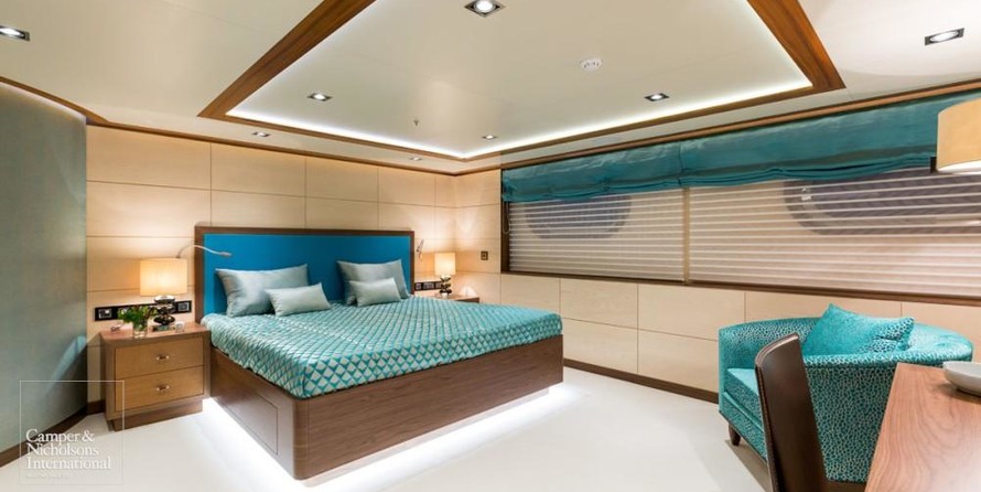 The motor yacht can accommodate 12 guests in 6 cabins and an exterior design by Acubens.