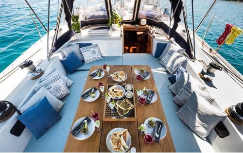 The sailing yacht can accommodate 8 guests in 4 cabins and an exterior design by Philippe Harlé.