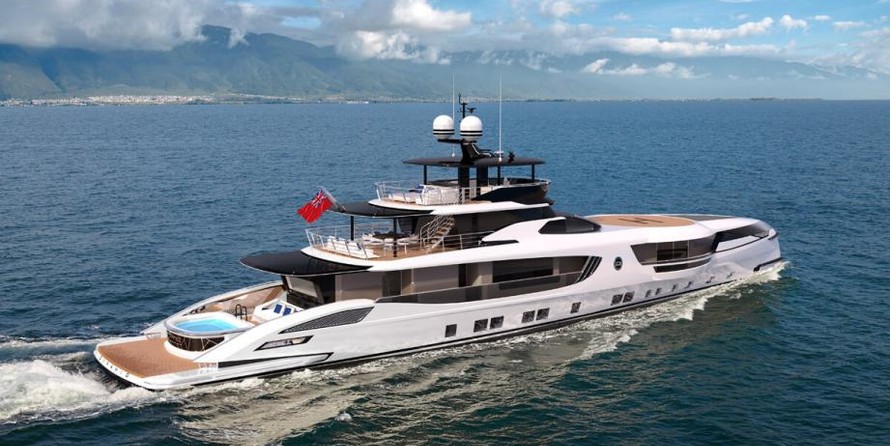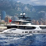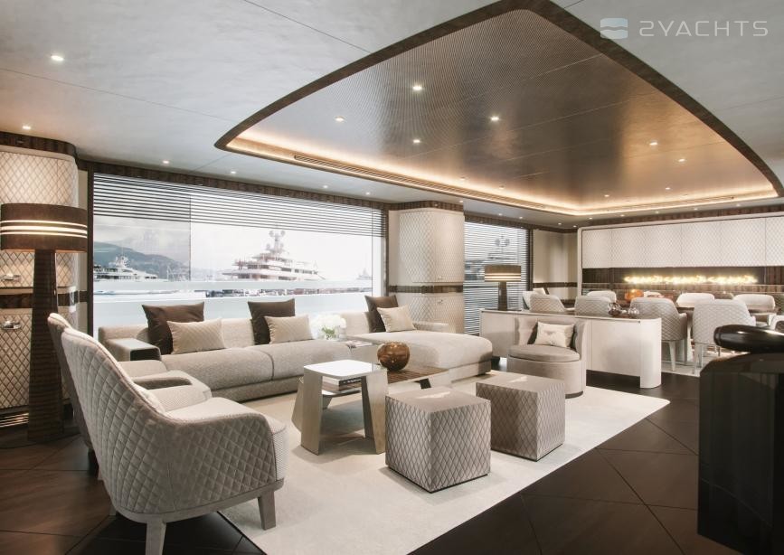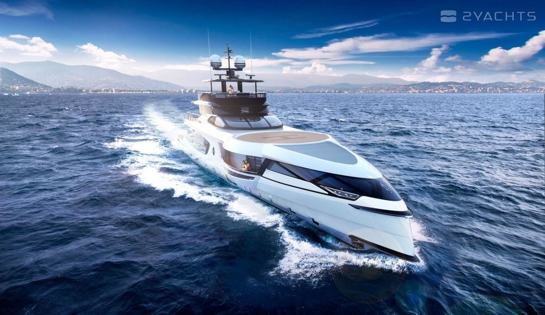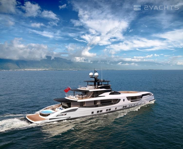 The motor yacht can accommodate 12 guests in 6 cabins with an interior design by Giuseppina Arena / Dynamiq and an exterior design by Dobroserdov Design.