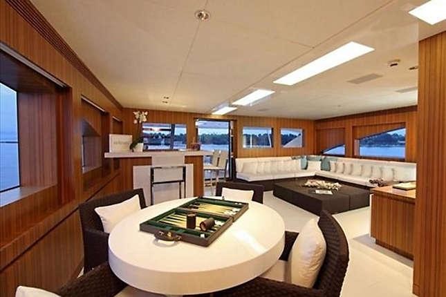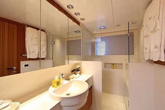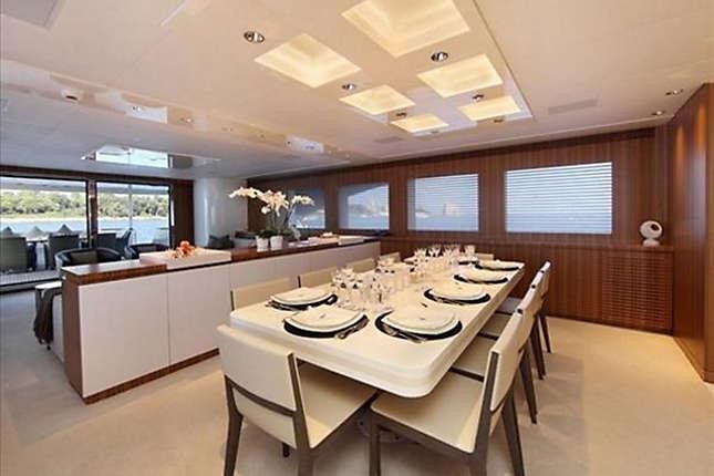 The motor yacht can accommodate 10 guests in 5 cabins. The yacht was designed by Luiz de Basto.