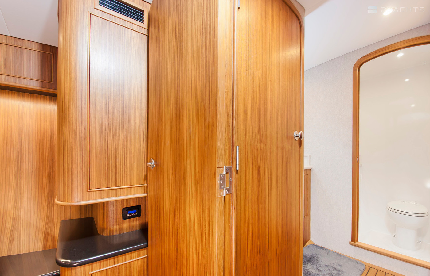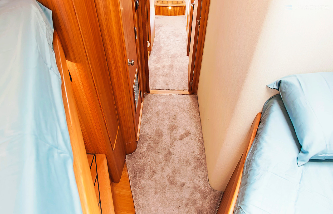 A True Custom Carolina Boat in Ride, Performance and Beauty! The satin teak interior of "DONNA MAE" Features A Roomy 3 Stateroom / 2 Head Layout with Roomy Staterooms, Large Salon, And Spacious Galley/Dinette. One ride offshore and you are sold! Nothing rides or performs at a higher standard of comfort, speed, easy planning, efficient and ocean taming than this Custom Carolina! 3' 10" Draft fully loaded due to 14' tunnels 7" deep. 3" stainless shafts, dripless rudder and shaft packings. Veem 5 blade props with a spare set of 5 blade props. Engine beds and shafts will also accommodate CAT C32s. CAT Hydraulic Power Steering. This Custom Sportfish has amazing agility...it handles and turns like a sports car! Huge rod and tackle storage below the Dinette table....comfortably fits 6 -130s, 4 -80s, 4 -50s, 4 -30s and the Lure Bags! Also the boat has a Vetus 24VDC Bow Thruster with separate batteries and charger!