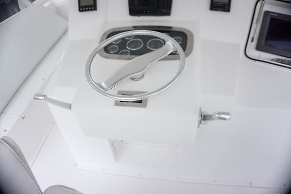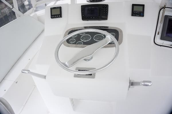 - Fiberglass helm pod with Glendinning single lever controls