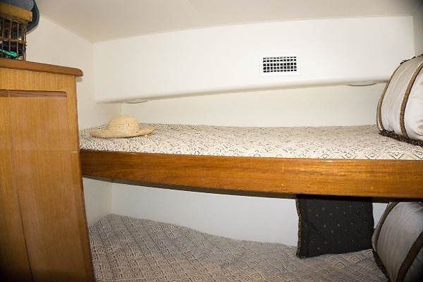 The popular 2 stateroom layout offers a queen master forward and upper lowers to port. There is a head with private access from the master and a second door from the companionway.