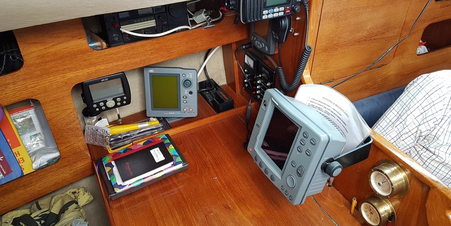 JRC 1000 radar, Raymarine RC530 plotter, Garmin 152 GPS, ICSnav6 navtex, Raymarine echosounder, Tacktic wind speed/direction indicator, SSB radio, clock, barometer, ICOM DSC VHF, 2 compasses, liferaft, floating lights, lifejackets, flares, foghorn, radar reflector, 2 fire extinguishers, first aid kit, danbouy, search light, jackstays, fire blanket, bilge pump.