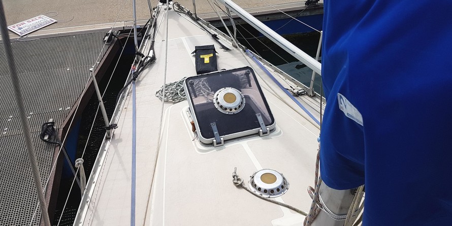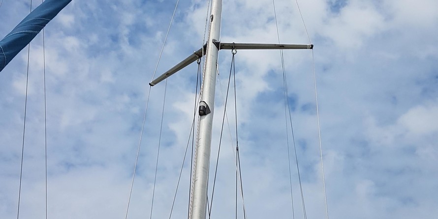 Fractional rig, stainless steel standing rigging (new in 2014), mainsail reefed to cockpit, spinnaker pole, Selden spars, Furlex headsail furling, anchor, 2 forehatches, cockpit table, 6 warps, fenders, anchor locker, stanchions/guardwires, boathook, mainsail cover, sprayhood.