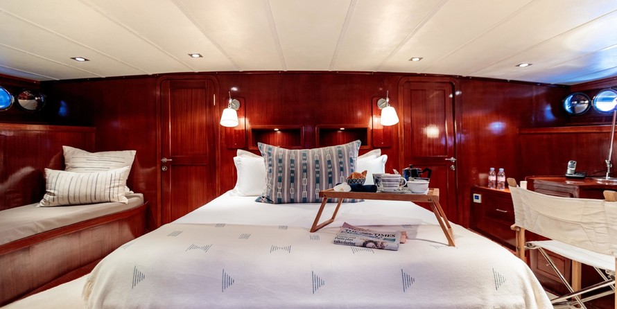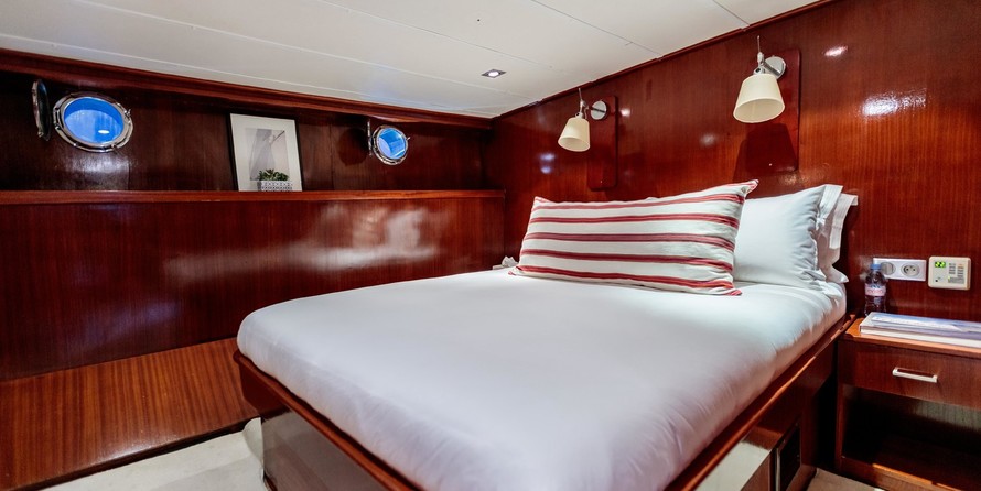 She comfortably sleeps up to ten guests in her five well-appointed cabins.