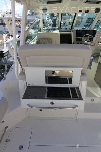 Overig: Meet the Boston Whaler that reimagines the possibilities for onboard space: the 2014 Innovation Award-winning 345 Conquest. No other boat for sale today is quite like it. Its cabin innovates with customizable storage, a sophisticated galley and head and the Dynamic Cabin System---a forward-berth dining table that seats six adults, and converts automatically into a plush queen-sized bed. The spacious helm area includes a generous rear-facing companion seat, reversible aft seat, skylights, a well-equipped food prep station and more, all but ensuring the captain will never cruise without company. Yet as comfortable as it is, the 345 Conquest is also a serious offshore fishing boat, with amenities and options like a bait-prep station and an available upper station. And new Mercury Joystick Piloting means effortless docking and precision maneuvering. Step aboard the 345 Conquest and see how smart onboard space can be.