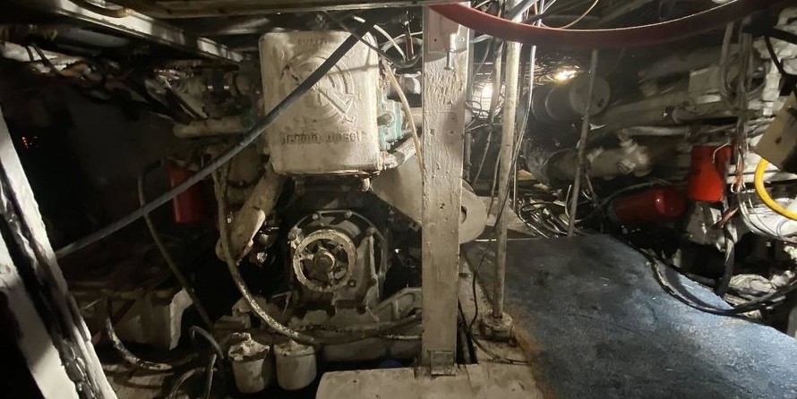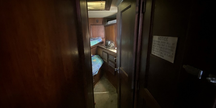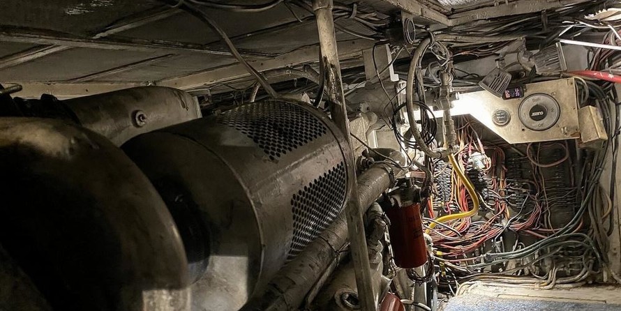 This boat's hull design provides a smooth ride in rough water. Long range cruising is not a concern with 886 gallons of fuel onboard... the freshwater tank was removed to accommodate an additional 86 gallons of fuel.