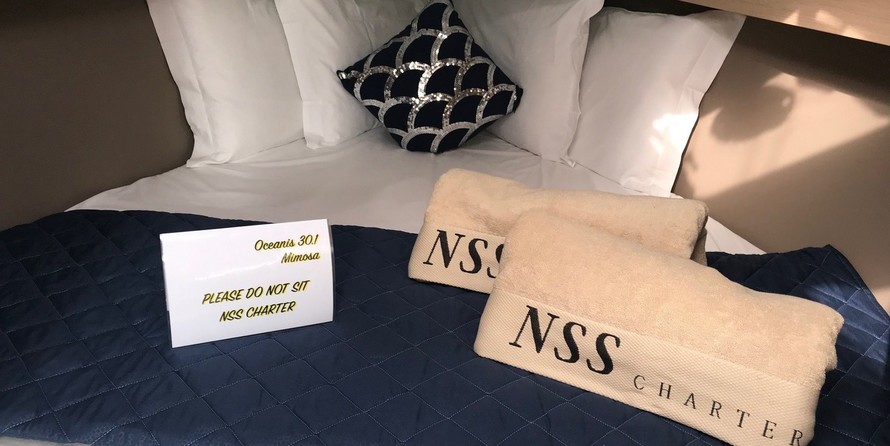Mimosa can accommodate up to 4 people in 2 double cabins. Pillows and blankets are included in the price.