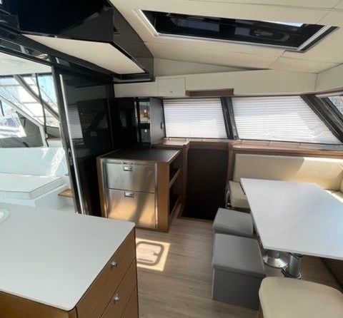 Boat equipment features rolling mainsail, generator, bimini and outside gps plotter. It also boasts a heating, air conditioning, an audio system, outside speakers and flybridge. The fully-equipped galley includes an oven, cooker, sink and kitchen utensils.