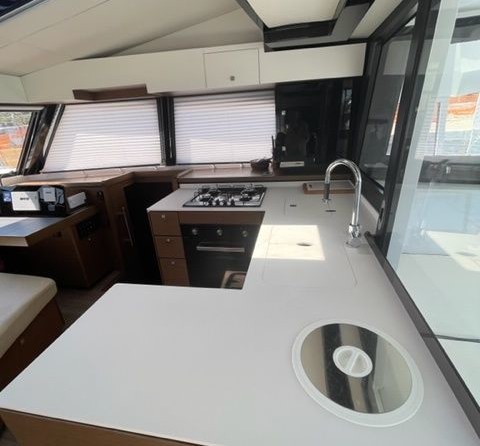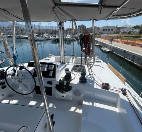 6-cabin catamaran Nautitech 46 Fly - Harmony Planet was built in 2021, and it is docked in SI.TI.MAR, Italy.