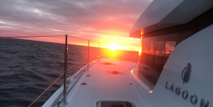 This catamaran is operated by the charter company Magic Sailing Charter.