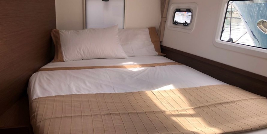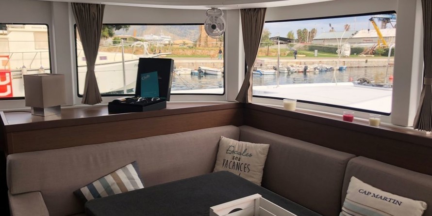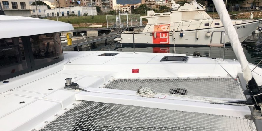 6-cabin catamaran Lagoon 42 - Sunrise was built in 2019, and it is docked in Capo d’Orlando marina, Italy.