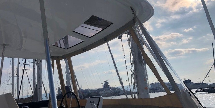 Boat equipment features classical mainsail, electric winches, generator, bimini and outside gps plotter. It also boasts a heating, air conditioning, an audio system, outside speakers and flybridge. The fully-equipped galley includes an ice maker, freezer, coffee machine, oven and cooker.