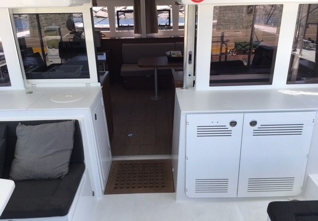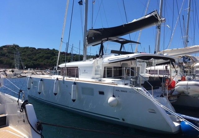 5-cabin catamaran Lagoon 450 F - Magic Lagoon was built in 2017, and it is docked in Marina di Portisco, Italy.
