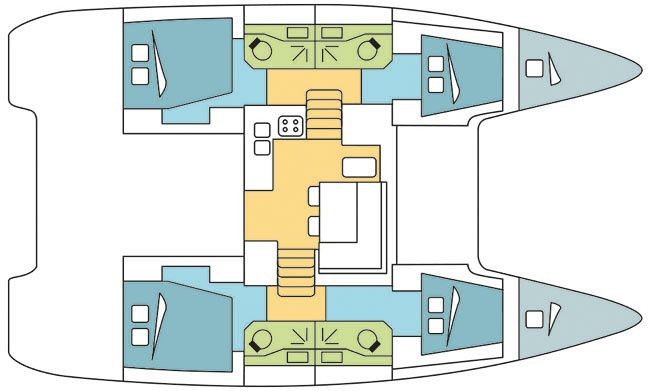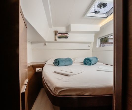 Nereo can accommodate up to 12 people in 2 single cabins, 4 double cabins and a saloon with 2 extra beds. Pillows and blankets are included in the price.