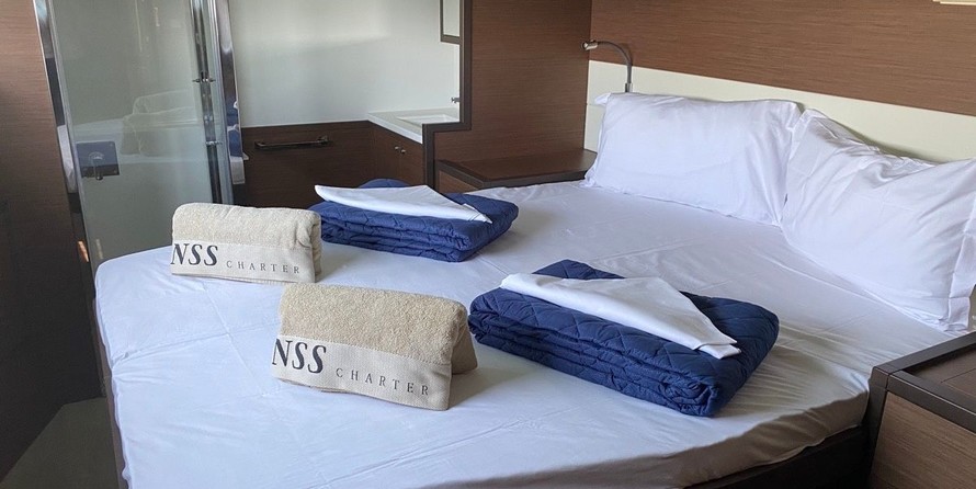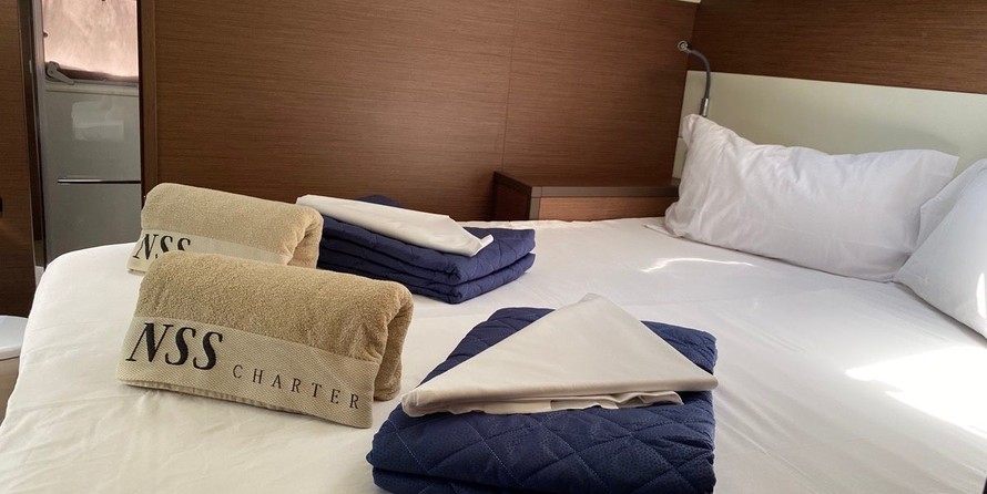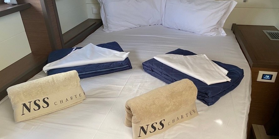 Orsa Maggiore can accommodate up to 12 people in 4 double cabins, 1 double cabin with a bunk bed and a saloon with 2 extra beds. Pillows and blankets are included in the price.