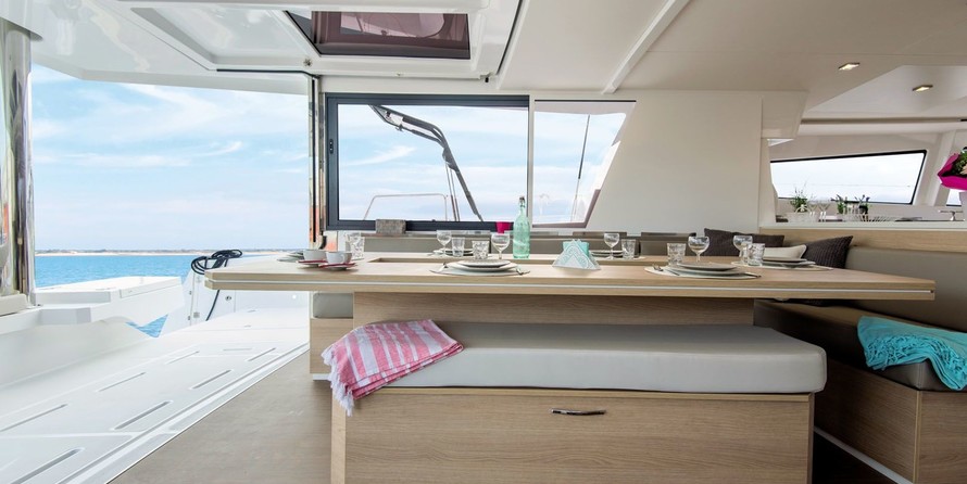 This catamaran is operated by the charter company Dream Yacht Charter.