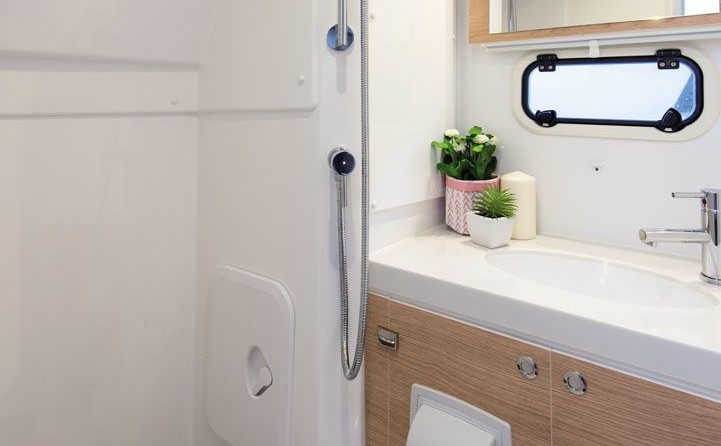 8-cabin catamaran Bali 5.4 - Aragorn was built in 2020, and it is docked in Marina Sud Cantieri, Italy.