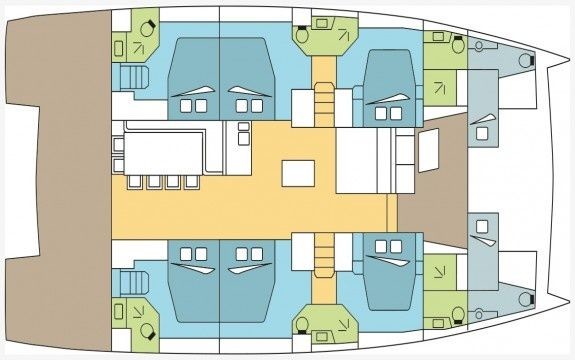 Aragorn can accommodate up to 12 people in 2 single cabins and 6 double cabins. Pillows and blankets are included in the price.