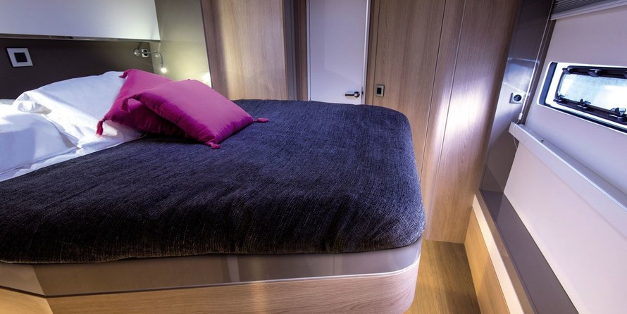 Boat equipment features classical mainsail, electric winches, solar panels, generator, bimini and outside gps plotter. It also boasts a heating, air conditioning, an audio system, outside speakers and flybridge. The fully-equipped galley includes a microwave, ice maker, freezer, coffee machine and oven.