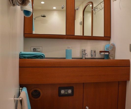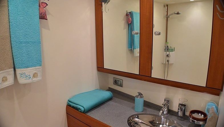 Sailing yacht Terra di Mezzo 3 offers 3 toilets with a shower.