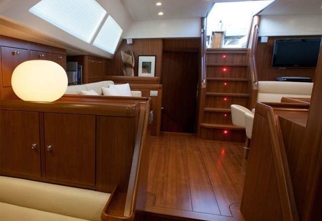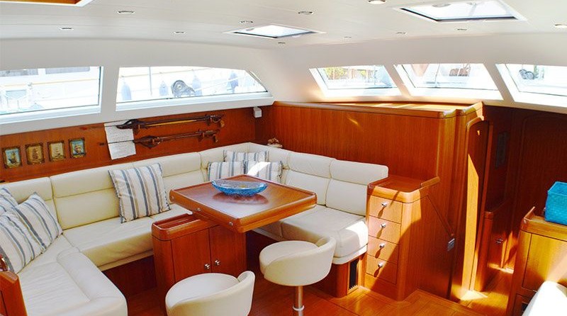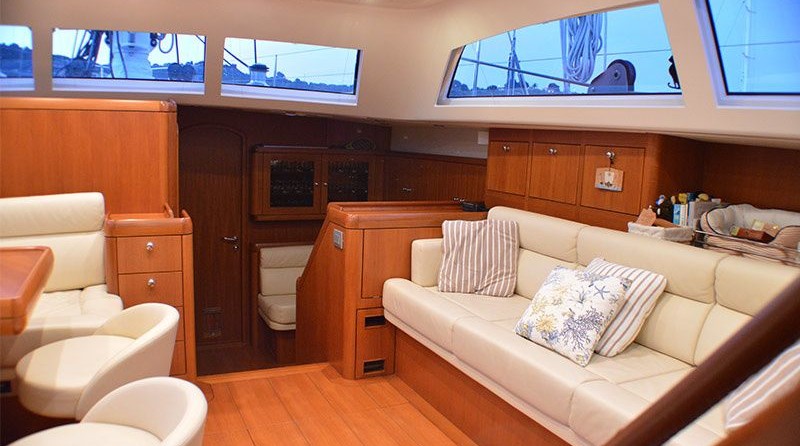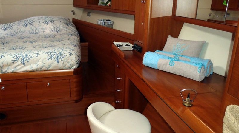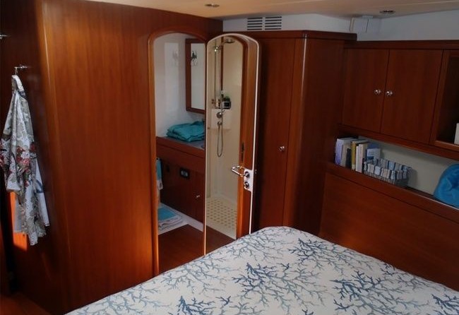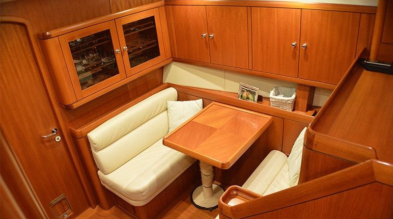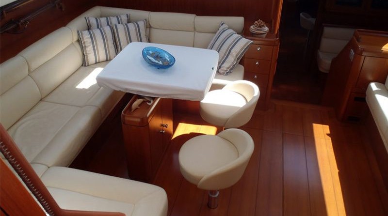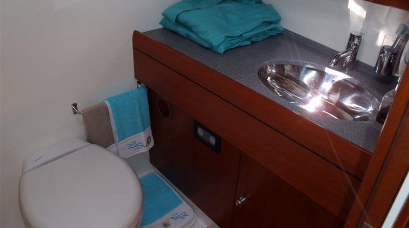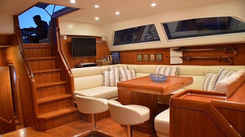 Boat equipment features rolling mainsail, radar, generator, salon gps plotter, bimini and bow thruster. It also boasts a flat screen tv, heating, air conditioning, an audio system and dvd player. The fully-equipped galley includes an ice maker, freezer, coffee machine, oven and cooker.