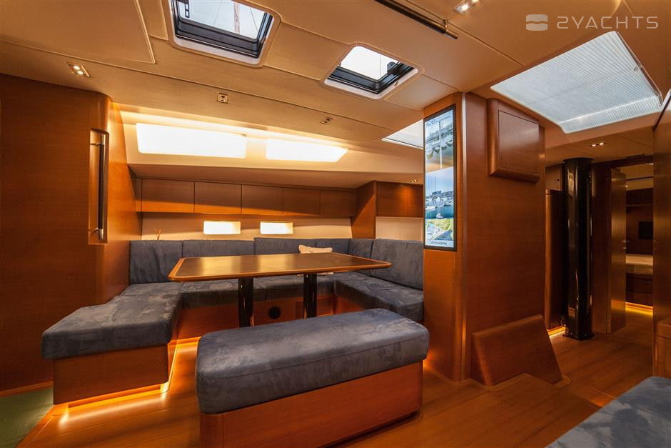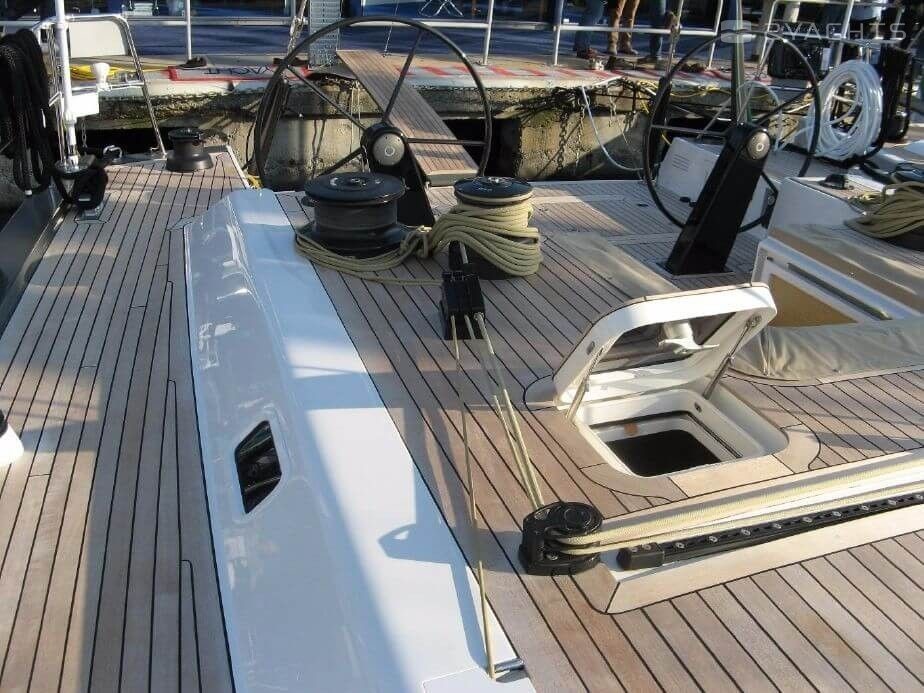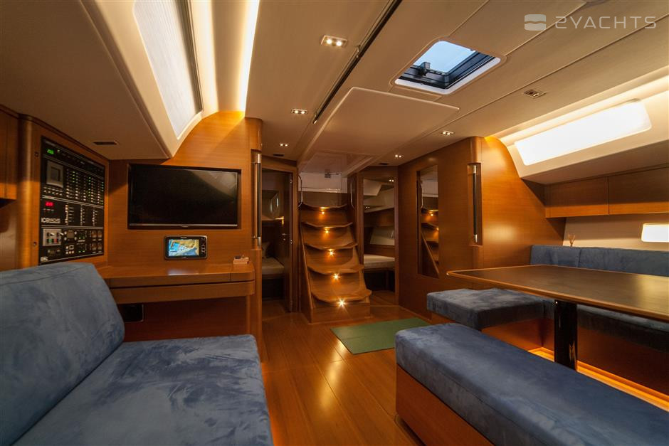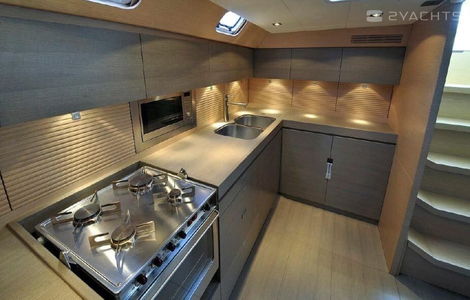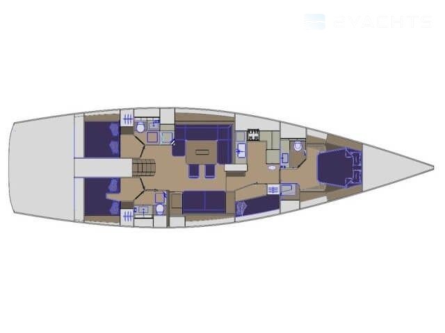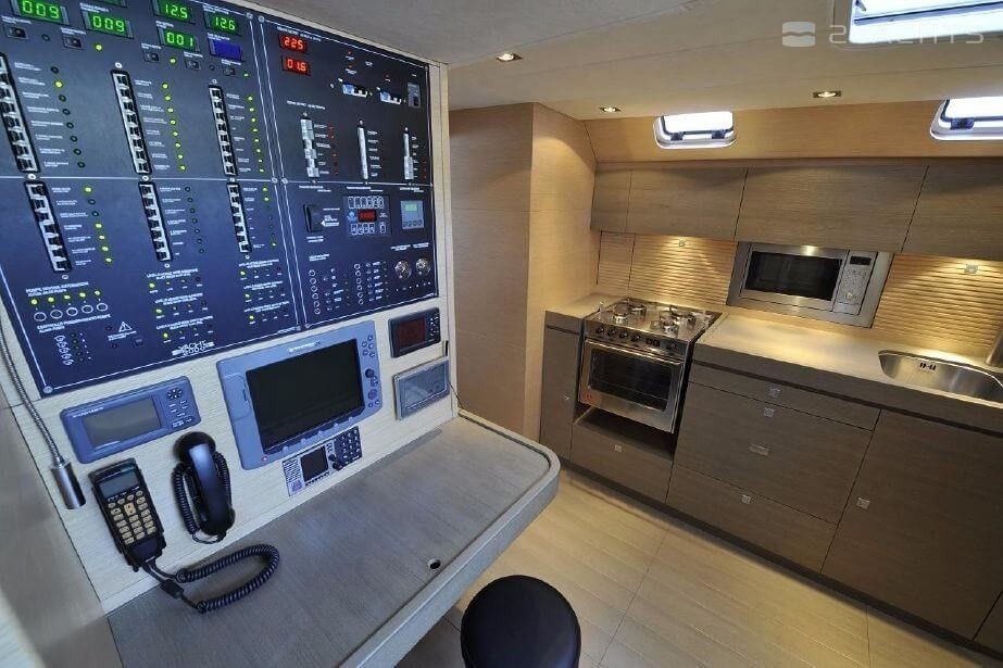 Boat equipment features classical mainsail, electric winches, radar, generator, bimini and bow thruster. It also boasts a flat screen tv, heating, air conditioning, an audio system and dvd player. The fully-equipped galley includes an oven, cooker, sink and kitchen utensils.