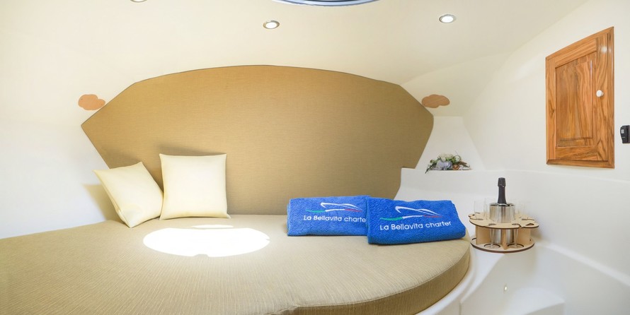 This motor yacht is operated by the charter company La Bella Vita Charter.