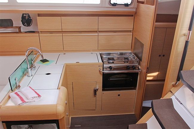 Boat equipment features classical mainsail, solar panels, salon gps plotter, bimini and bow thruster. It also boasts an an audio system, outside speakers and inside speakers. The fully-equipped galley includes a freezer, oven, cooker, sink and kitchen utensils.