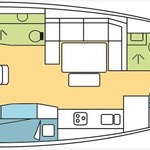 Boat equipment features classical mainsail, solar panels, bbq, bimini and outside gps plotter. It also boasts an an audio system, outside speakers and inside speakers. The fully-equipped galley includes an oven, cooker, sink and kitchen utensils.