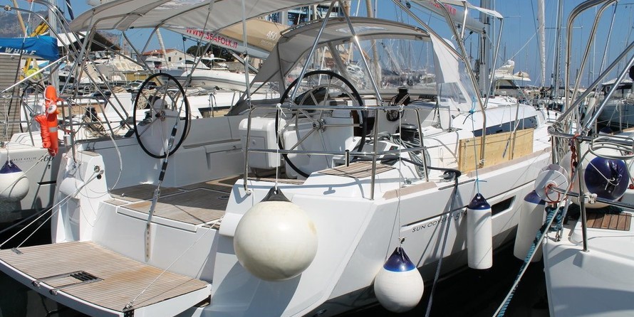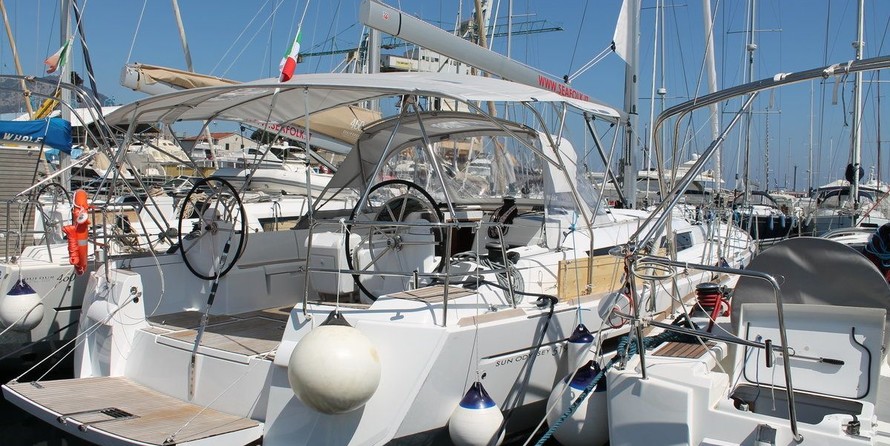 6-cabin sailing yacht Jeanneau Sun Odyssey 519 - Mercury Planet was built in 2017, and it is docked in Porticciolo di Marsala, Italy.