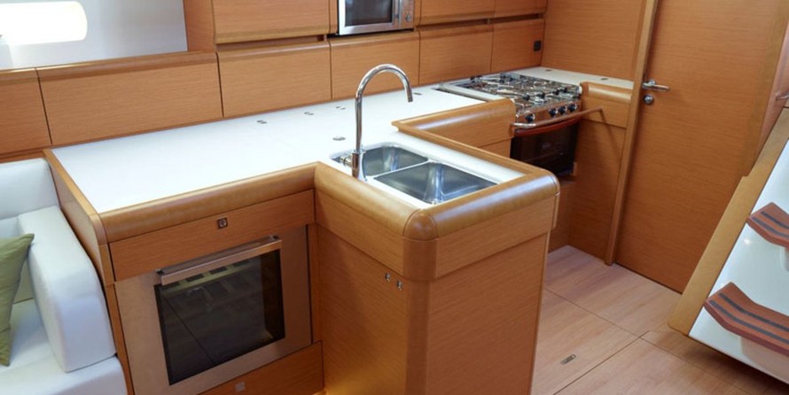 Boat equipment features rolling mainsail, bimini and bow thruster. It also boasts an an audio system, outside speakers and inside speakers. The fully-equipped galley includes an oven, cooker, sink and kitchen utensils.