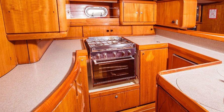 Boat equipment features classical mainsail, radar, salon gps plotter and bimini. It also boasts an an audio system, free stand up paddleboard and inside speakers. The fully-equipped galley includes an oven, cooker, sink and kitchen utensils.
