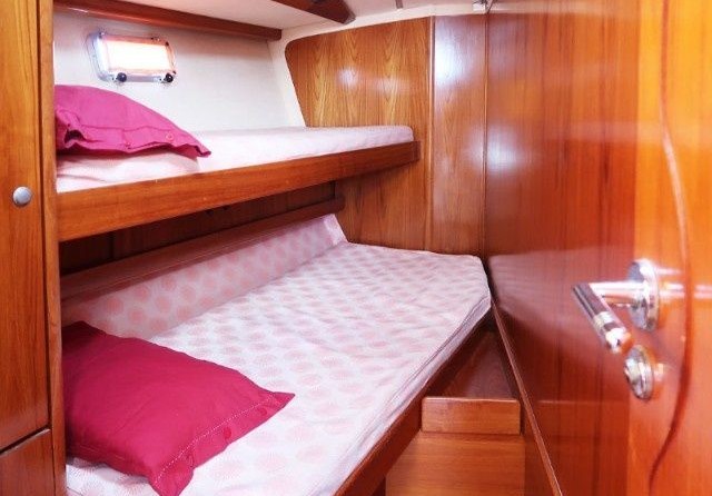 Chia can accommodate up to 8 people in 2 double cabins and 2 double cabins with a bunk bed. Pillows and blankets are included in the price.