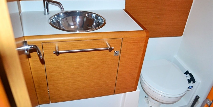 Sailing yacht No Stress offers 2 toilets with a shower.