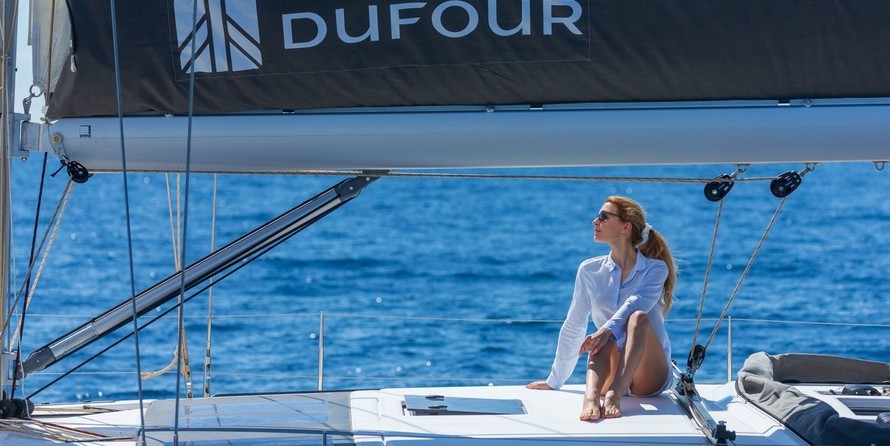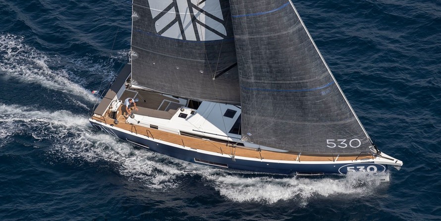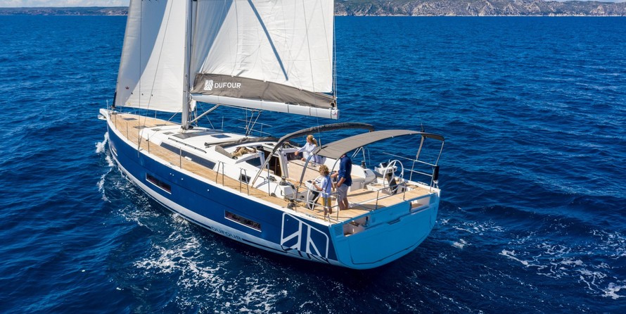 6-cabin sailing yacht Dufour 530 - Cervantes was built in 2021, and it is docked in Cala dei Sardi, Italy.