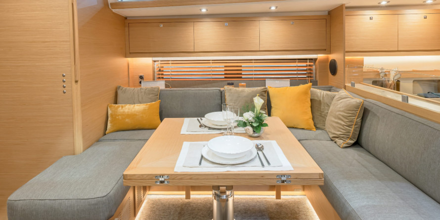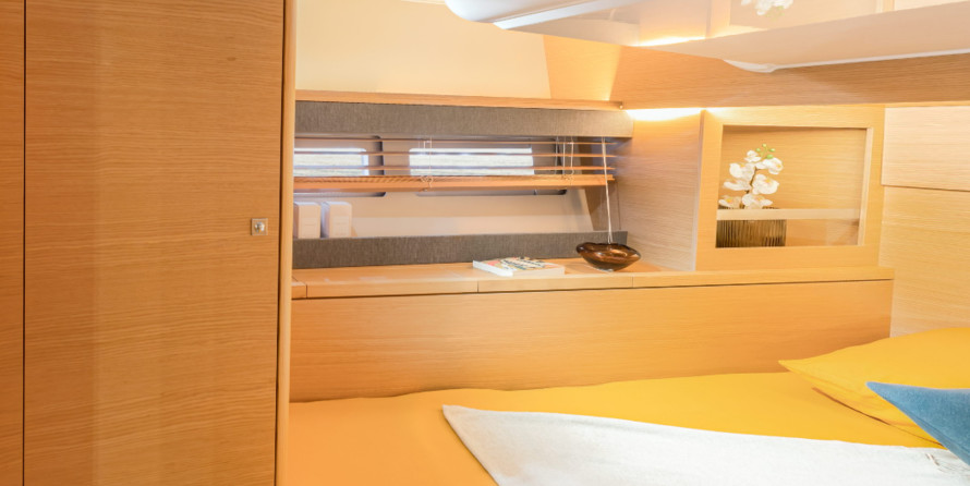 Cervantes can accommodate up to 13 people in 1 single cabin, 4 double cabins, 1 double cabin with a bunk bed and a saloon with 2 extra beds. Pillows and blankets are included in the price.