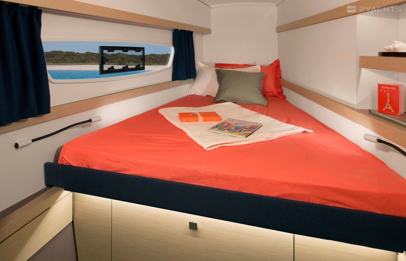 This catamaran is operated by the charter company Kiriacoulis.
