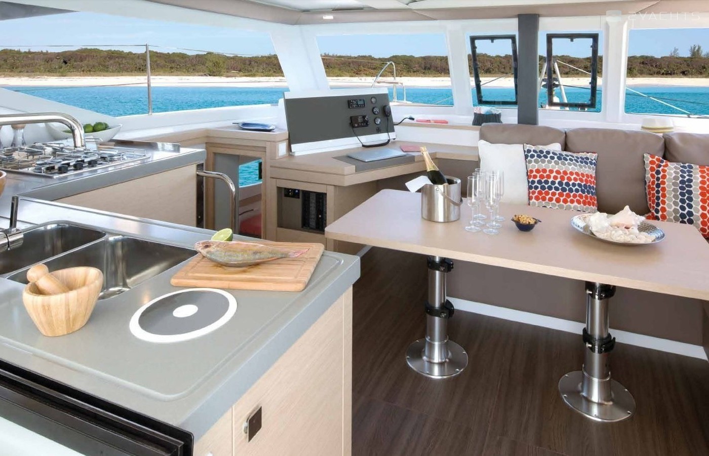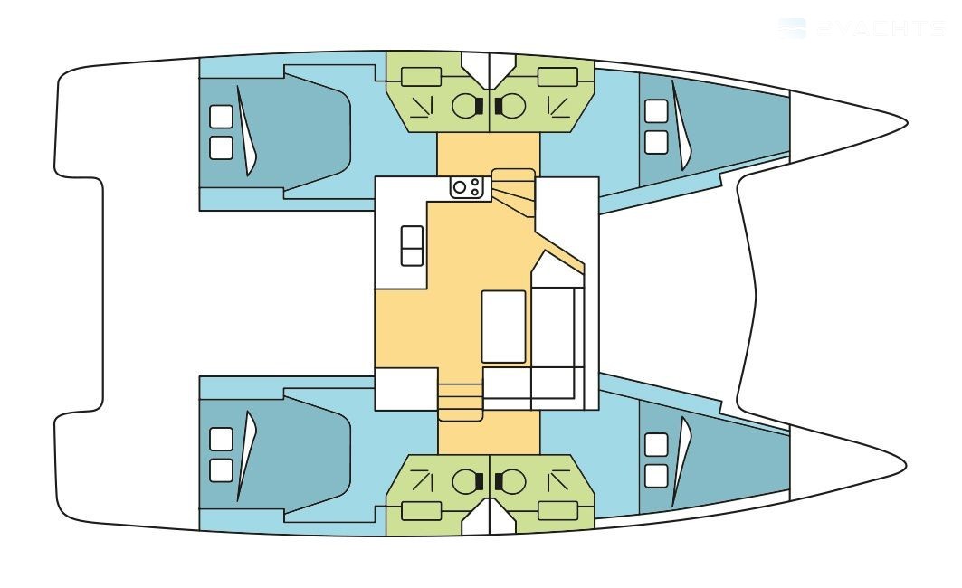 Boat equipment features classical mainsail, bimini and outside gps plotter. It also boasts an an audio system, outside speakers and inside speakers. The fully-equipped galley includes an oven, cooker, sink and kitchen utensils.