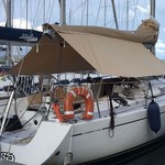 Boat equipment features classical mainsail, radar, salon gps plotter and bimini. It also boasts a flat screen tv, an audio system, outside speakers and inside speakers. The fully-equipped galley includes an oven, cooker, sink and kitchen utensils.