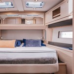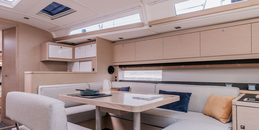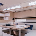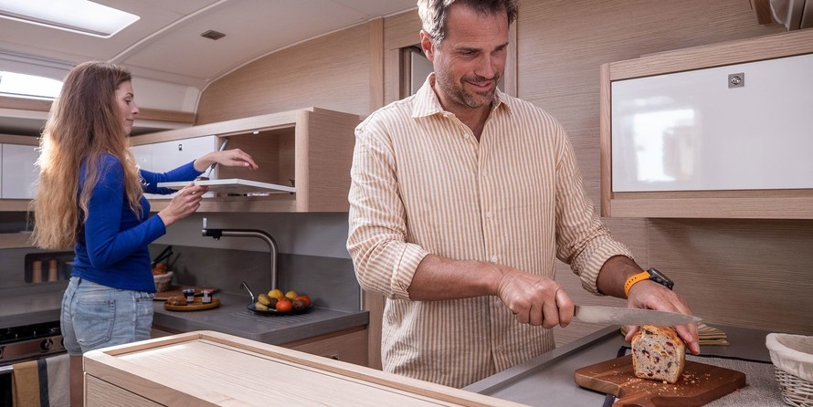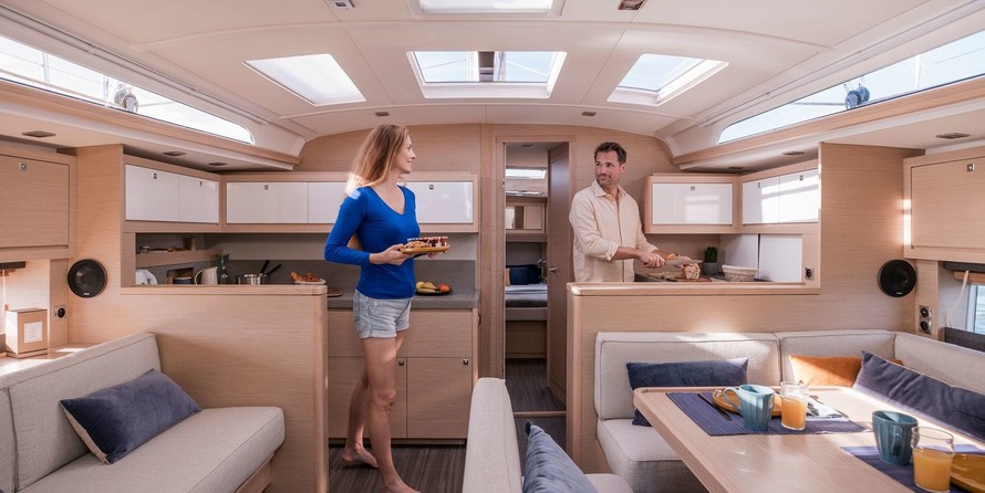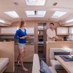Boat equipment features classical mainsail, solar panels, bbq, bimini and bow thruster. It also boasts a heating, an audio system, outside speakers and inside speakers. The fully-equipped galley includes an oven, cooker, sink and kitchen utensils.