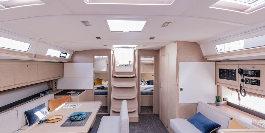 6-cabin sailing yacht Dufour 470 - Fortuna was built in 2022, and it is docked in Marina di Stabia, Italy.