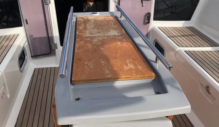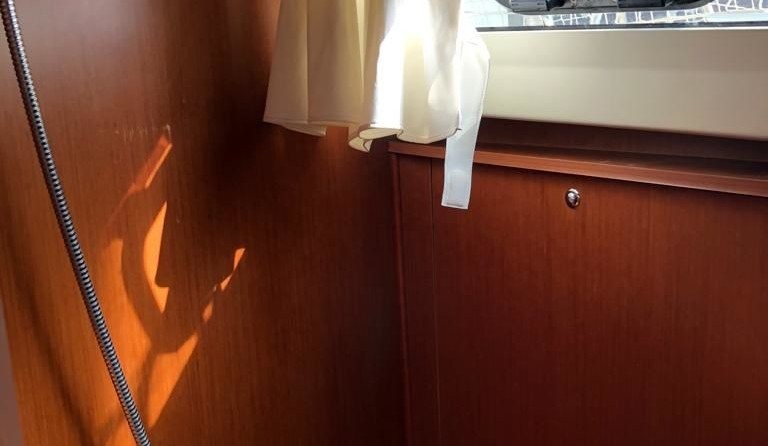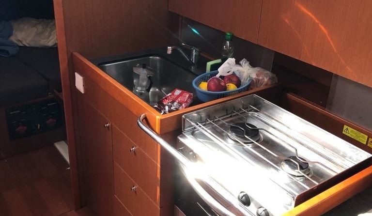 Boat equipment features classical mainsail, bimini and outside gps plotter. It also boasts an an audio system, outside speakers and inside speakers. The fully-equipped galley includes an oven, cooker, sink and kitchen utensils.