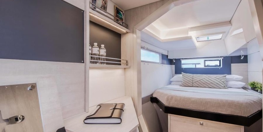4-cabin catamaran Leopard 40 - Aisha was built in 2019, and it is docked in Marina di Procida, Italy.